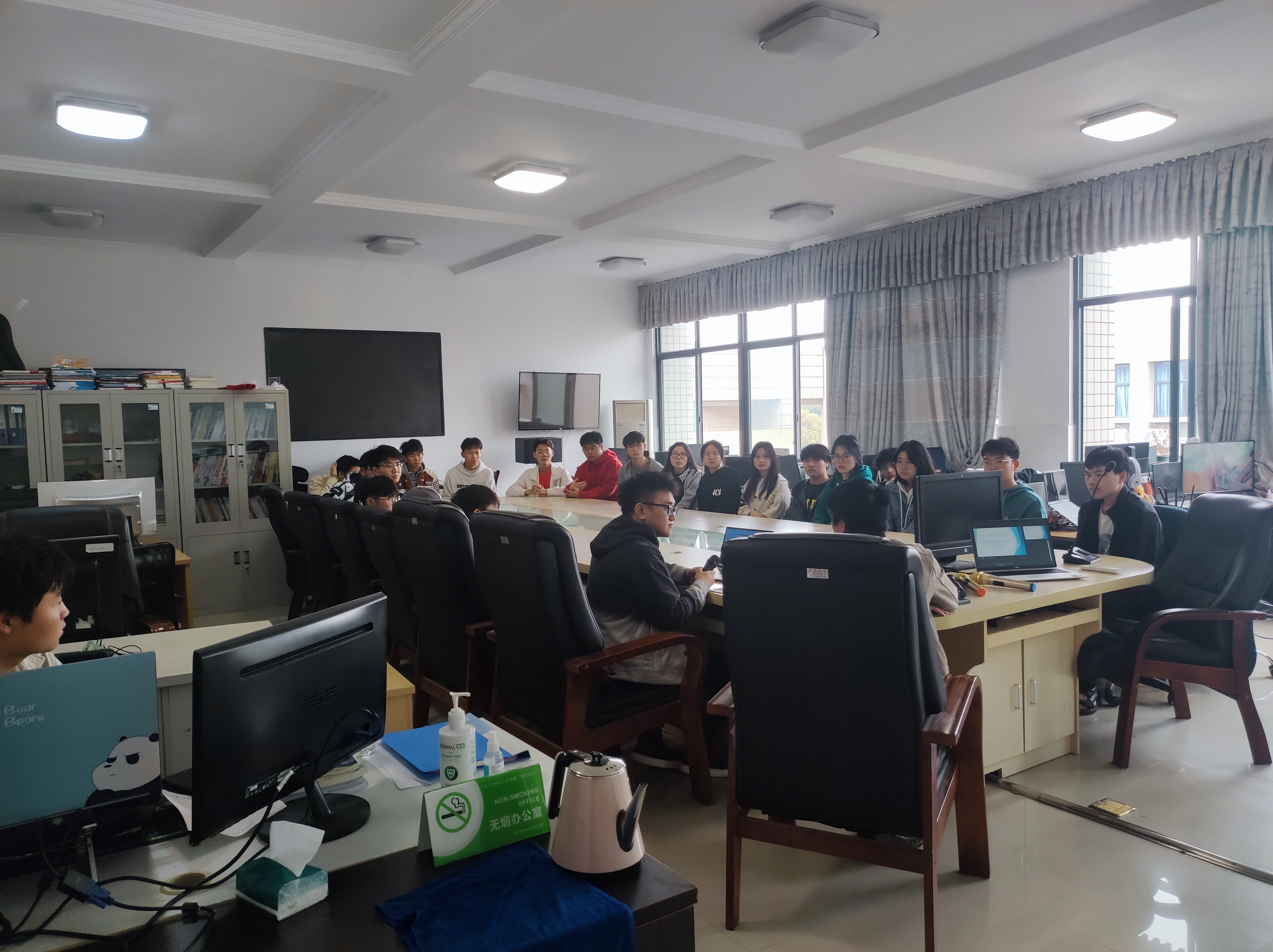 移动通信网络优化精英人才培养工匠工坊(以下简称移通工匠工坊)负责人谢宗霖老师与成员到场后,千贝软件工匠工坊(以下简称千贝工匠工坊)师生集体表示热烈欢迎,并表示这种交流活动能极大促进工匠工坊师生之间的技能水平和竞技水平的提升。移通工匠工坊负责人希望双方优势互补,发挥各自工坊所在学院的专业优势,从人员技能切磋和资源共享方面深入加强合作。千贝工匠工坊负责人朱堂勋老师建议此类交流活动形成长效机制,并以项目合作为切入点开展有实质性的深入合作。移通工匠工坊谢宗霖老师,还从技能大赛的方面展开探讨。另外,双方还提议今后加强交流,相互学习工匠工坊的运行模式,做到取长补短,精益求精。交流会后,千贝工匠工坊师生与移通工匠工坊成员共同展开讨论,互相解惑。就感兴趣的技术技能热点展开热烈探讨。